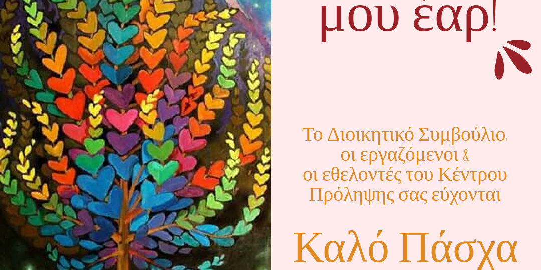 Το Διοικητικό Συμβούλιο, οι εργαζόμενοι και οι εθελοντές του Κέντρου Πρόληψης Αχαΐας Καλλίπολις εύχονται σε εσάς και τις οικογένειές σας Καλό Πάσχα και Καλή Ανάσταση!!!